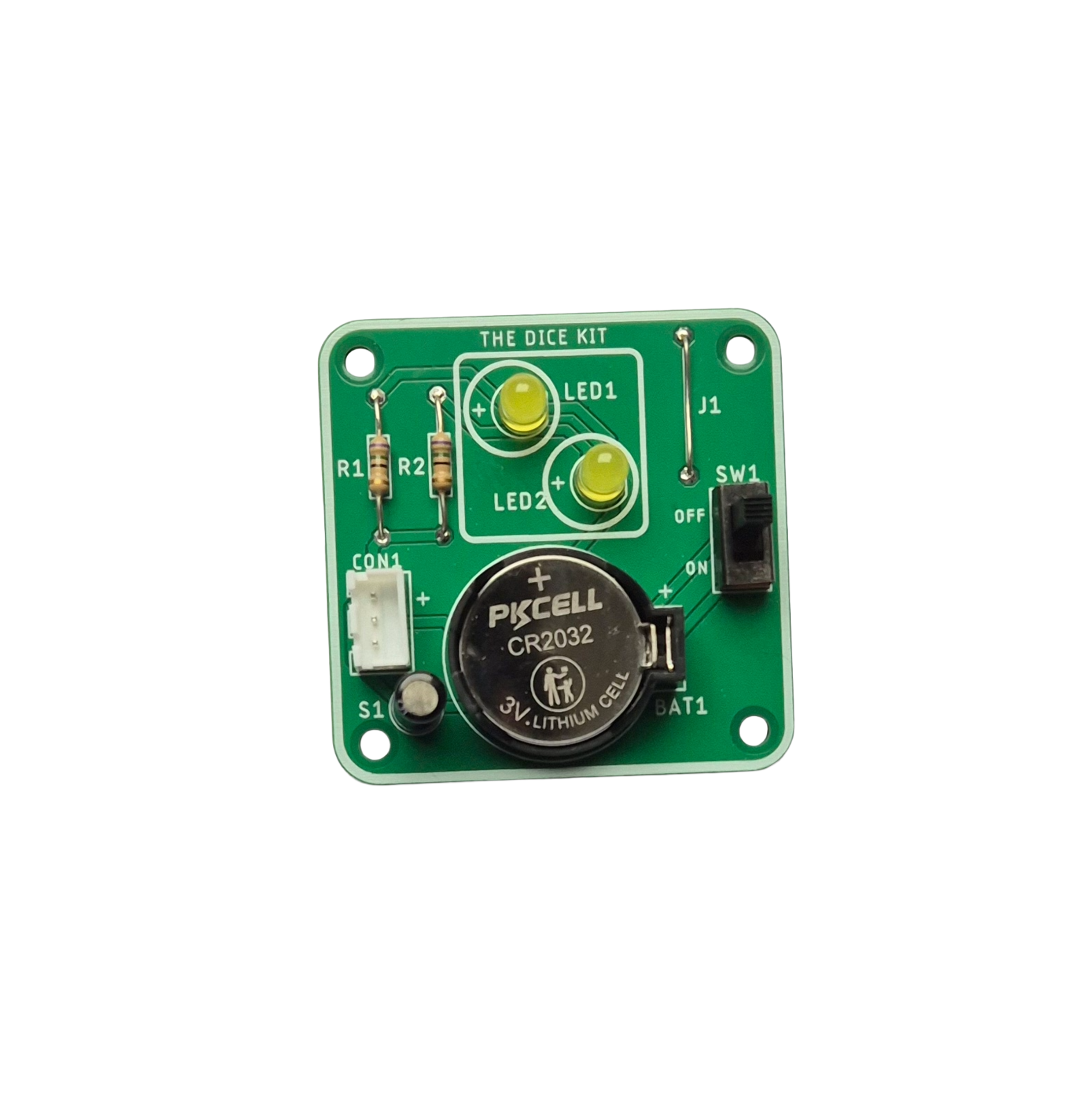 Ga naar de shopThe Dice Kit is de tweede kit uit de nieuwe reeks The Mini Series. Deze kit bestaat onder andere uit gele LED’s, een kantelsensor en een schuifschakelaar. The Dice Kit is geïnspireerd op een dobbelsteen, die veel wordt gebruikt in gezelschapsspellen. Tijdens het in elkaar zetten van deze kit leer je over weerstanden, LED’s en de kantelsensor.
