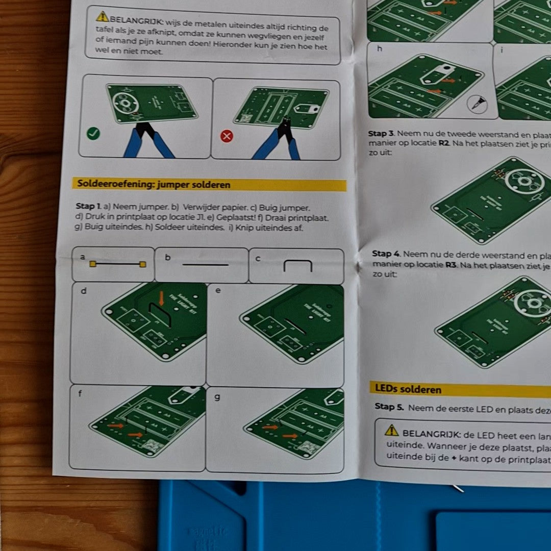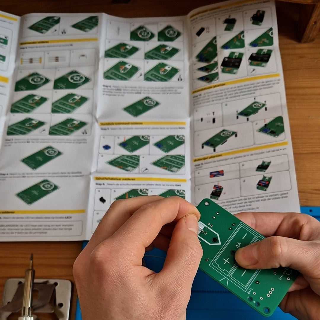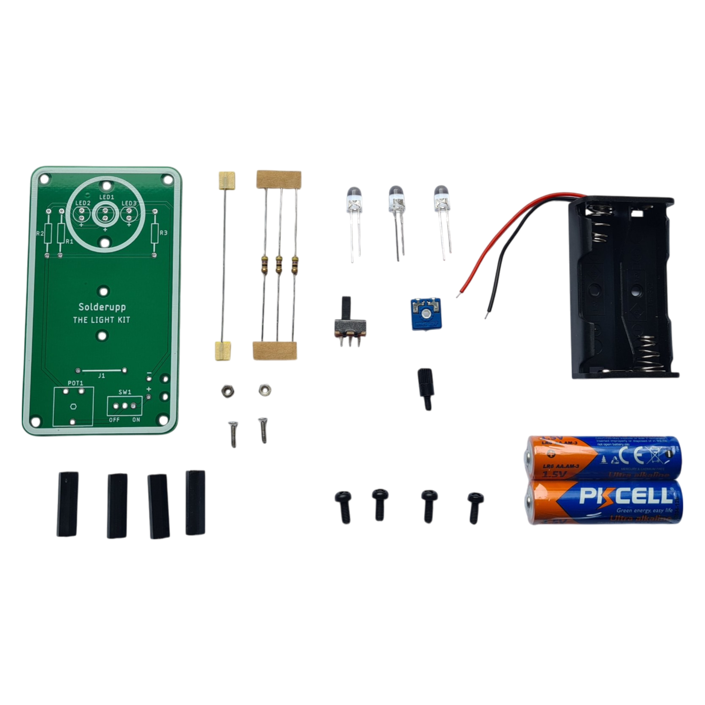 Ga naar de shopDe light kit is een kleine dimbare lamp, welke bestaat uit o.a. een variabele weerstand en 3 LED’s. De light kit is geïnspireerd op een spoorweglamp, die vroeger werd gebruikt bij het spoor. Tijdens het in elkaar zetten van deze kit leer je over LED’s, weerstanden, variabele weerstanden en het circuit van deze kit! Bij de kit is een Nederlandse handleiding inbegrepen, samen met een set losse onderdelen. Je hebt geen voorkennis nodig over elektronica om deze moderne soldeerkit in elkaar te zetten.